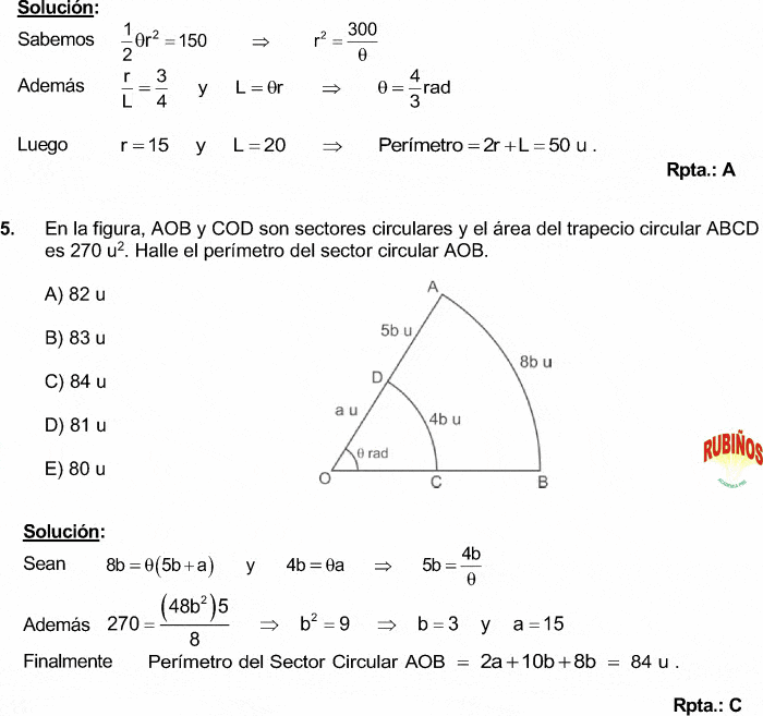 Ejercicios Resueltos De Figuras Circulares Calculo De Perimetro Y Area De Figuras Circulares Circulo Sector Circular Triangulo Circular Segmento Circular Corona Circular Trapecio Circular Elipse Y Segmento De Parabola