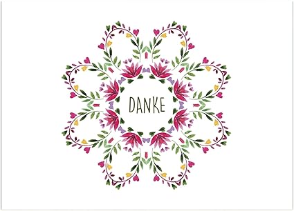 15 Moderna Texto Thank You Corona De Flores Acuarela Danke Con 15 Sobres En Juego Tarjetas De Agradecimiento Danke Decir Despues De Boda Nacimiento Baby Bautizo Confirmacion Cumpleanos Amazon Es Oficina Y Papeleria