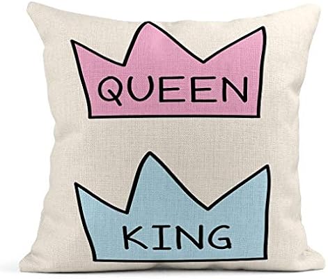 Kinhevao Cojin Negro Coronas Rey Y Reina Planas Dibujos Animados Doodle Dibujo Bebe Rosa Azul Escritura Interior Linea Cojin De Lino Almohada Decorativa Para El Hogar Amazon Es Jardin