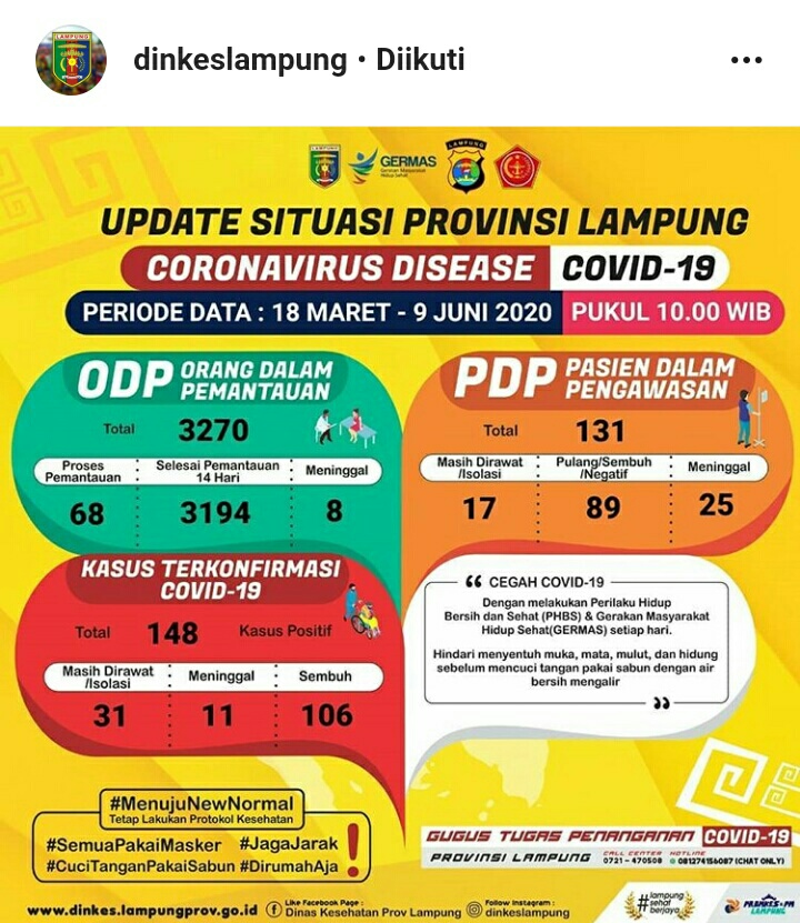 Positif Corona Di Lampung Tembus 252 Terbaru Hasil Tracing Bandar Lampung Sembuh Tambah Dua