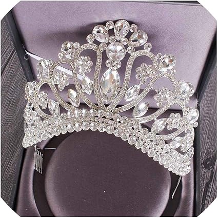 He Shop Barroco De Plata Grande Vintage Claro Princesa De Cristal Reina Diadema Rhinestone Novia Coronas Y Tiaras Para La Boda Accesorios Para El Cabello Mujer Joyas Para El Pelo Joyeria Mujer