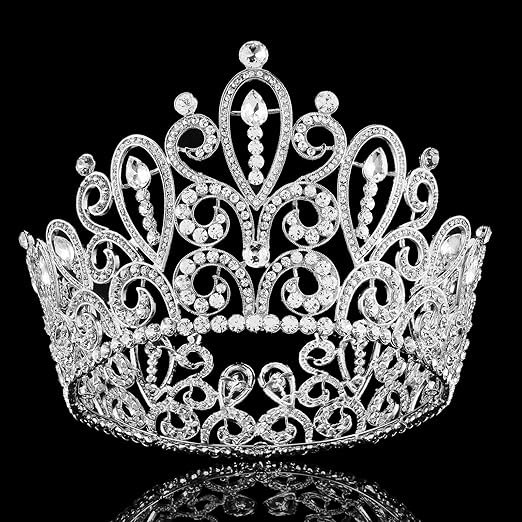 Reina Corona Redonda Completa Lujosa Corona Grande De Novia Tiara De Cristal Tiaras Para Mujer Para Bodas Graduaciones Concursos Fiestas Amazon Es Hogar