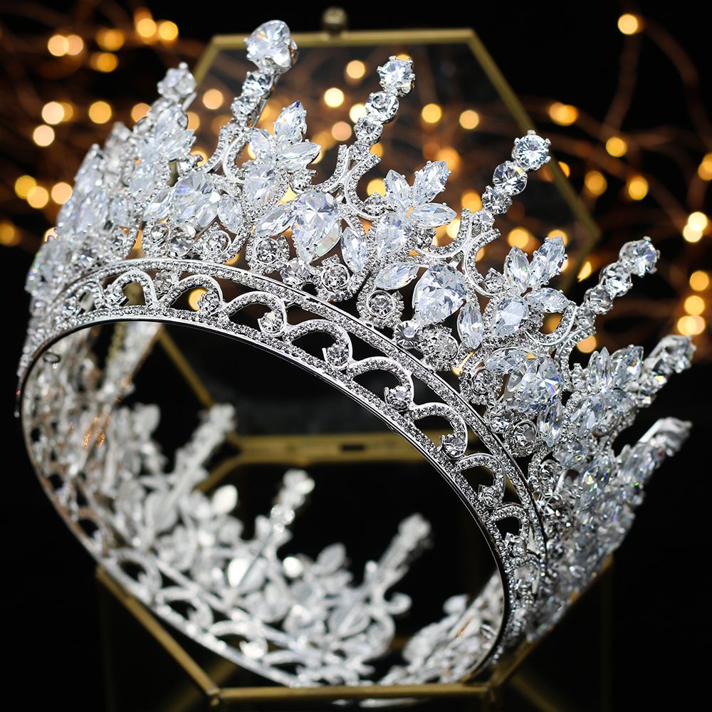 Lujo A Zirconia Corona Tiara Plata Mas Grande Corona Nupcial Diamantes De Imitacion Reina Real Princes Tiaras And Crowns Bridesmaid Hair Jewelry Bridal Crown