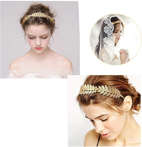 Jzk 4 X Diadema De Hoja Dorada Estilo Griego Corona De Pelo Nupcial Para Mujer Ninas En Fiesta De Boda Halloween Uso Diario Y Regalo De Cumpleanos De Navidad Diademas