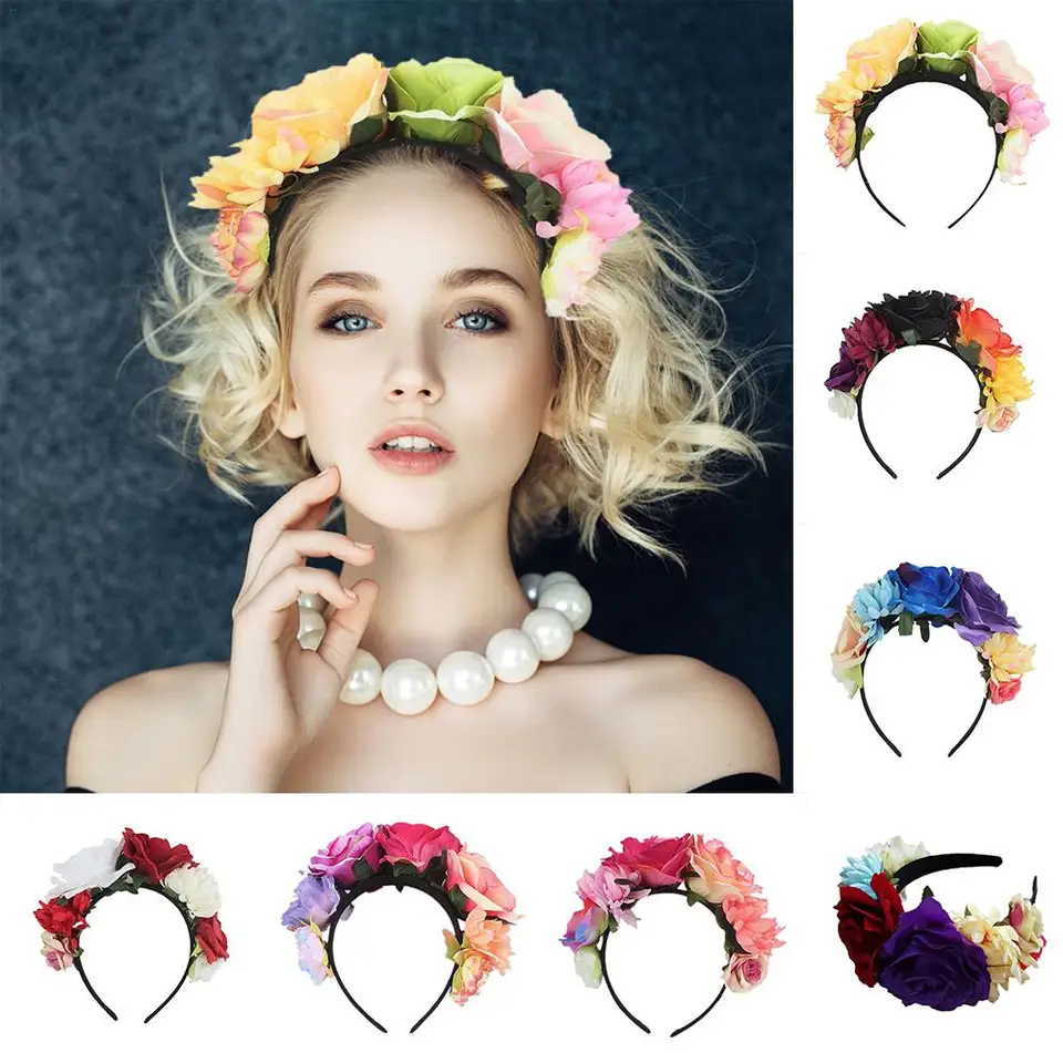 Nueva Guirnalda Hawaiana De La Corona De La Flor De La Rosa De Las Mujeres Para El Dia De Fiesta De Los Muertos Diadema Del Traje De La Guirnalda De La Rosa