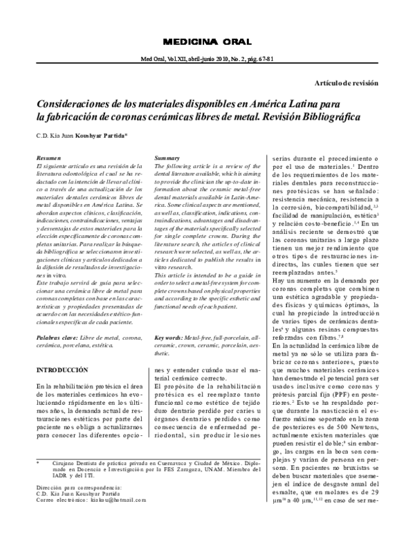 Protesis Fija Convencional Libre De Metal Tecnologia Cad Cam Zirconia Descripcion De Un Caso Clinico