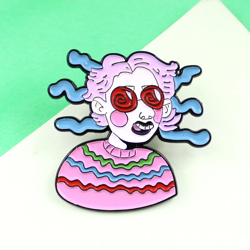 Rosa Mujer Cantante Dibujos Animados Personaje Broche Cabeza Creativa Corona Pelo Rizado Rosa Chica Esmalte Pin Denim Abrigo Insignia Regalo Para Nino Aliexpress