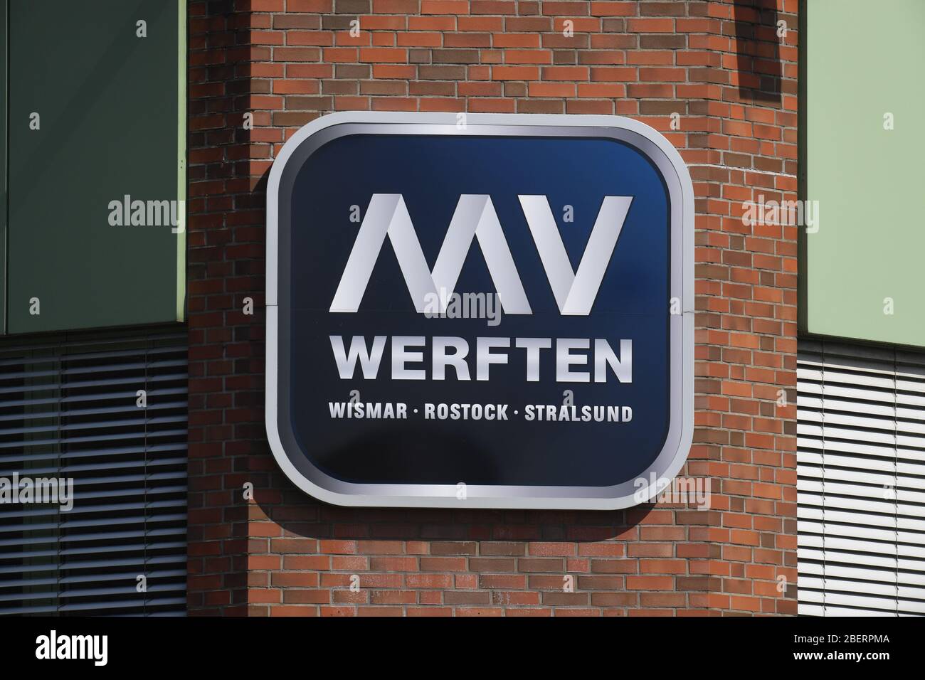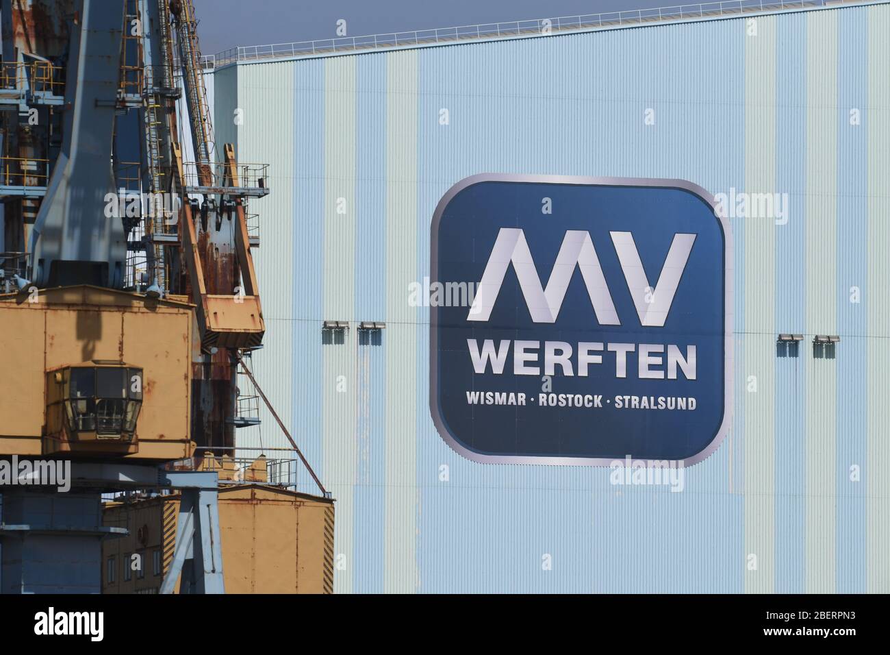 Stralsund Germany 15th Apr 2020 The Logo Of The Mv Shipyards Hangs At The Shipyard Entrance