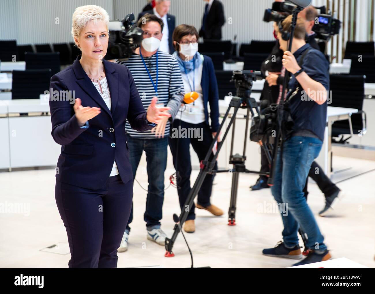Schwerin Germany 16th May 2020 Manuela Schwesig Spd The Prime Minister Of Mecklenburg Vorpommern Talks To Participants Of The Meeting About Further Steps To Return From The Corona Lockdown Before The Start Of