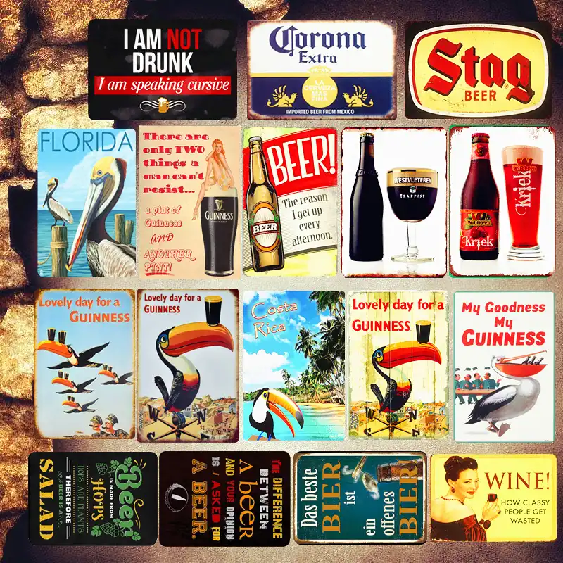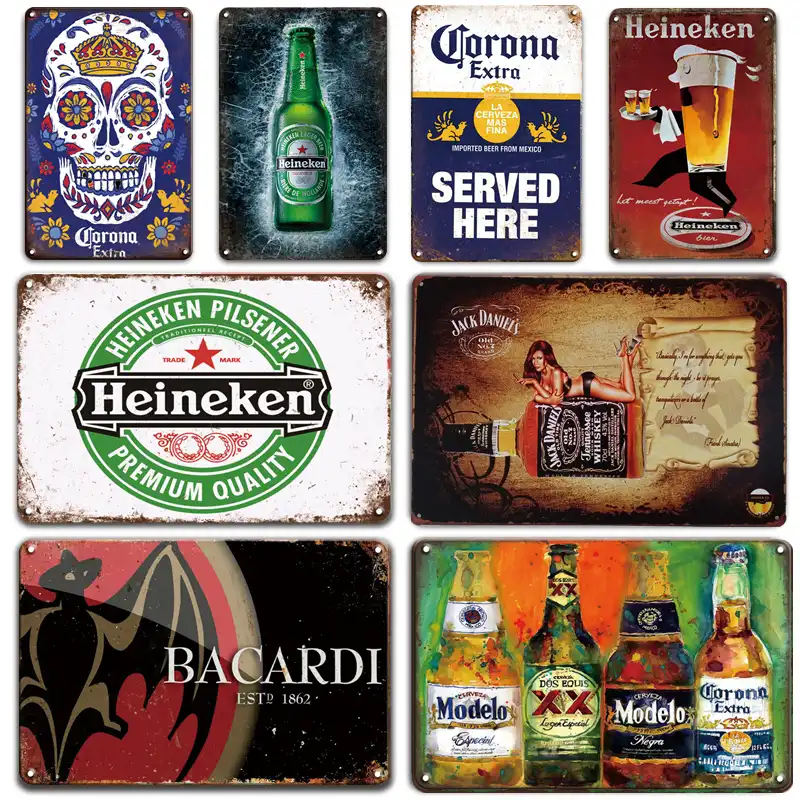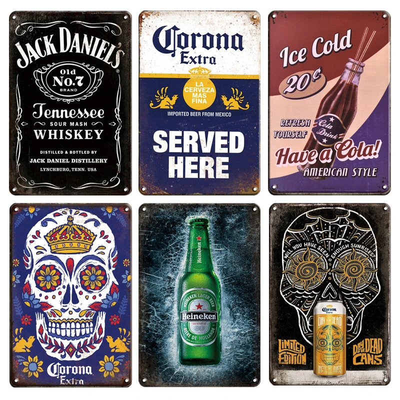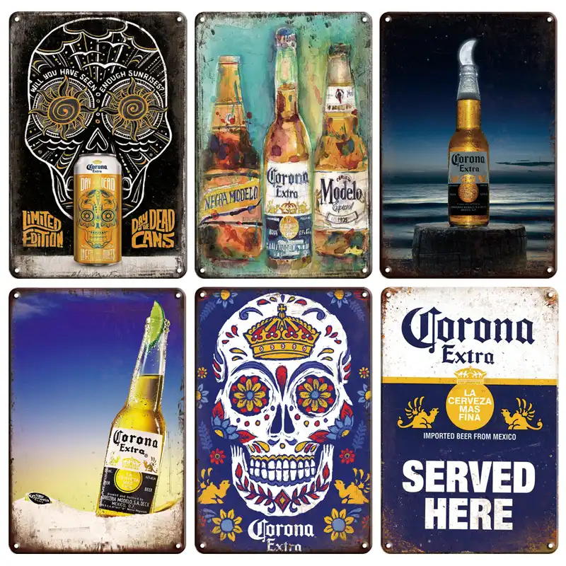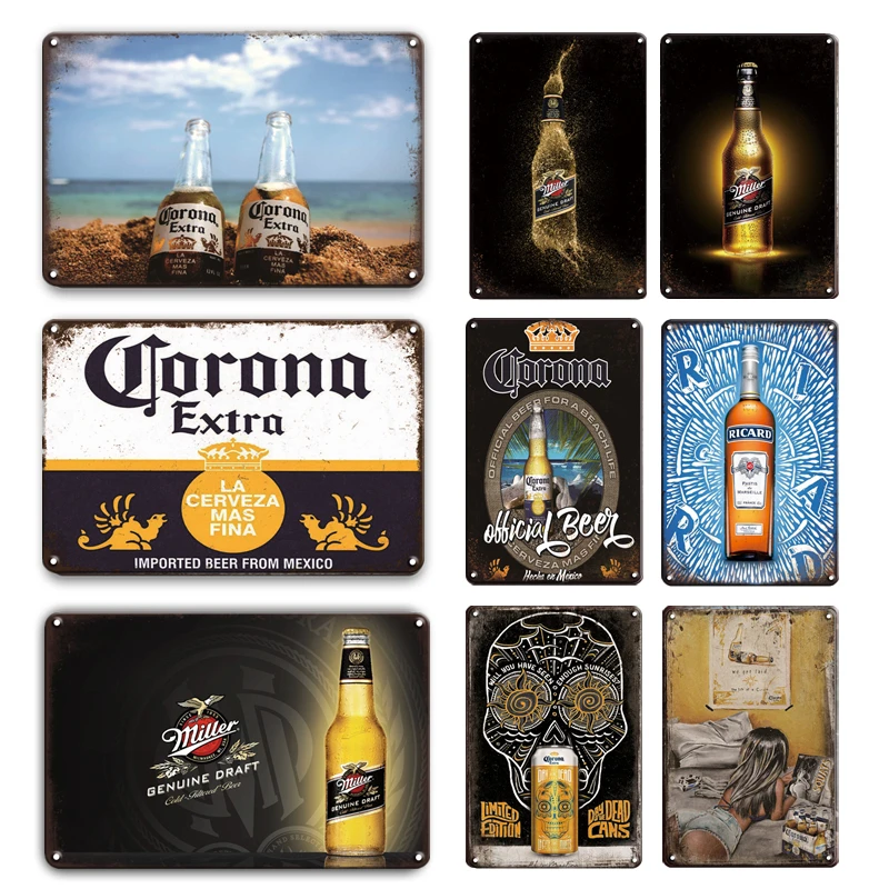 Vintage Beer Poster Metal Tin Sign Retro Corona Wall Sticker Decorative Plaques Shabby Chic Pub Bar Home Decoration Plates Aliexpress