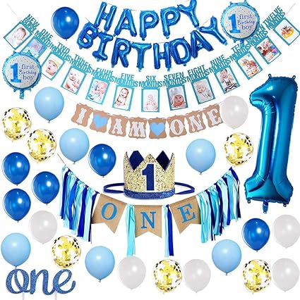Amazon Com Decoracion De Primer Cumpleanos Para Ninos Con Corona De Cumpleanos Decoracion De Primer Cumpleanos Para Ninos Suministros De Fiesta De Cumpleanos Para Ninos De 1 Ano Con Cartel De
