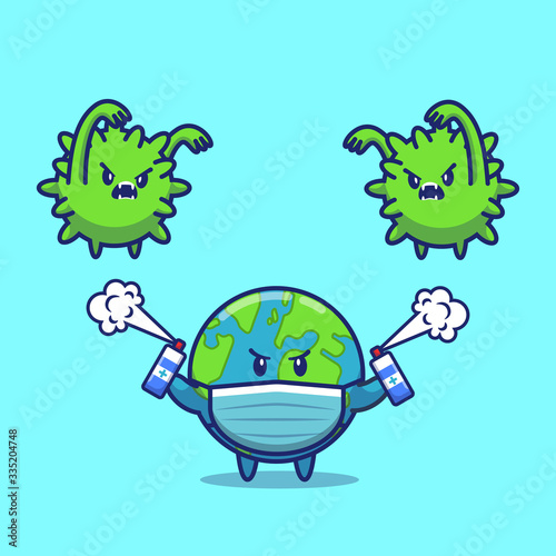 World Fight Corona Virus Vector Icon Illustration Corona Mascot Cartoon Character World Icon Concept White Isolated Flat Cartoon Style Suitable For Web Landing Page Banner Flyer Sticker Card Buy This Stock