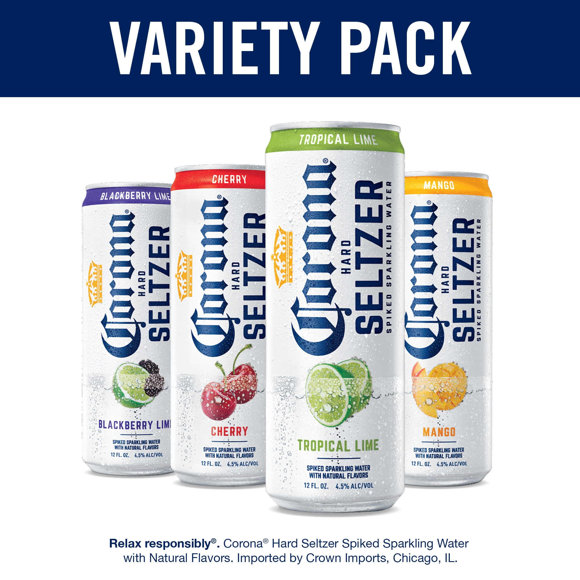 Corona Hard Seltzer Gluten Free Variety Pack 12 Pk 12 Fl Oz Cans 4 5 Abv With Tropical Lime Mango Blackberry Lime And Cherry Spiked Seltzer Walmart Com Walmart Com