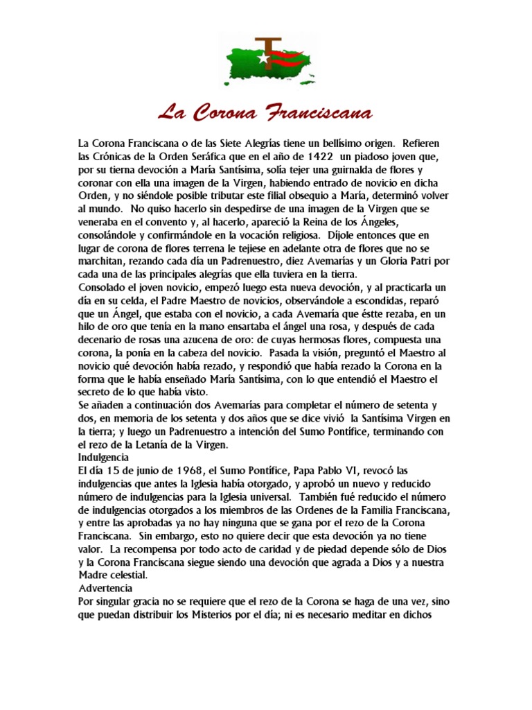 Vida Franciscana Siguiendo Los Pasos De Cristo A Traves De Los Pasos De Francisco De Asis Rosario O Corona Franciscana 1