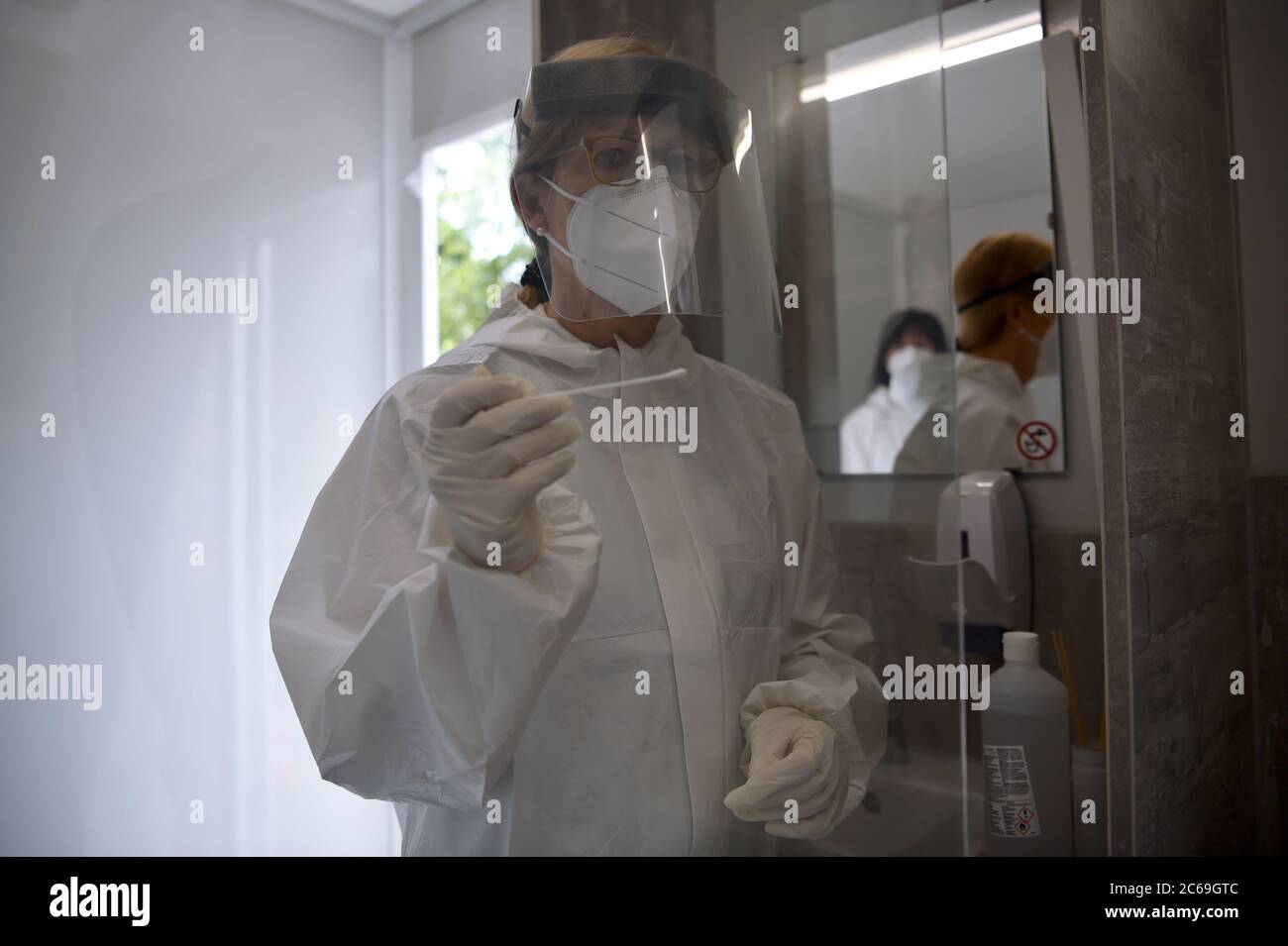 Employees From The Health Department In Mitte Hold A Swab In A Car News Photo Getty Images