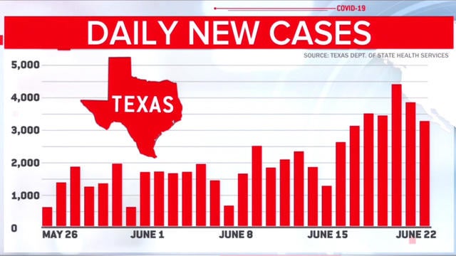Texas Hospitalizations From Coronavirus Rise 60 In A Week Governor Calls Spread Unacceptable Cbs News