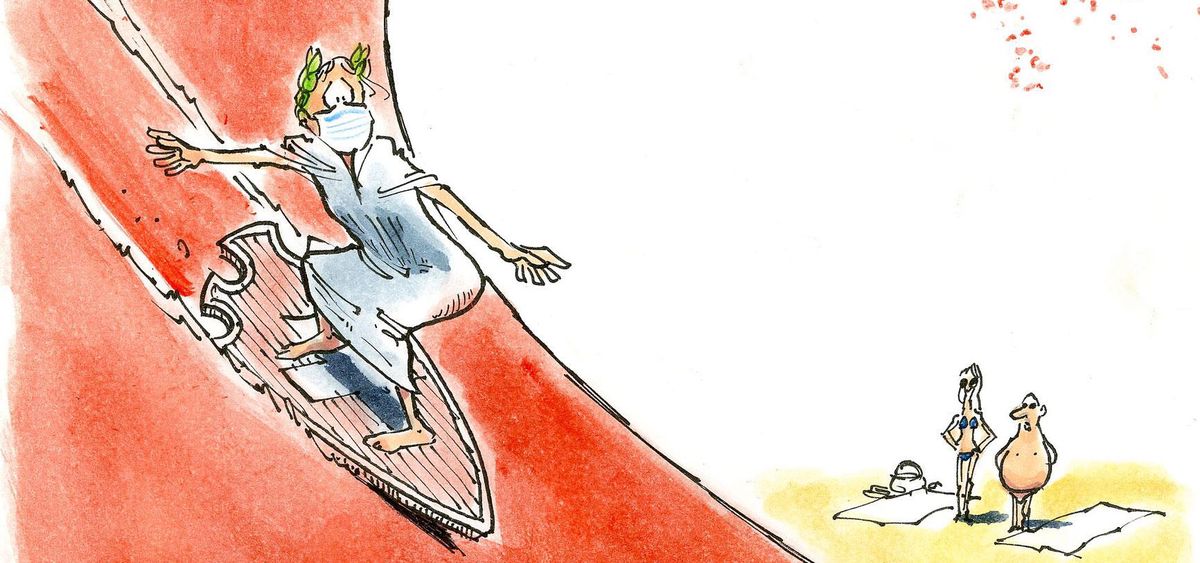 Paolo Calleri Karikaturist Freier Grafiker Illustrator Politische Karikatur Warten Auf Die Zweite Welle Welt Europa Eu Deutschland Covid 19 Corona Coronavirus Virus Infektionen Lockdown Lockerungen Bundeslander Wirtschaft Reisen