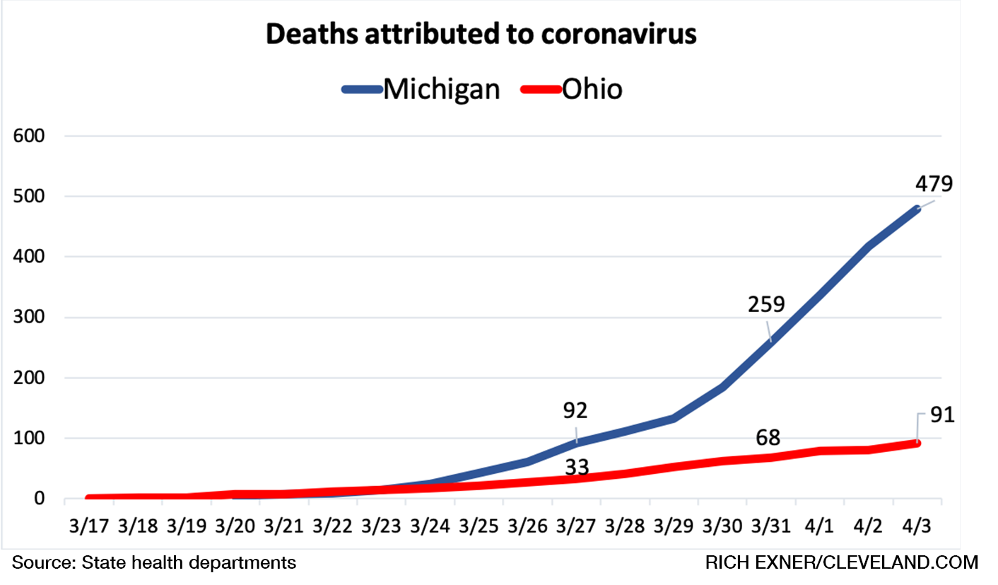 Ohio Has 351 Coronavirus Cases Compared To 1 035 In Michigan Compare Timeline Of Restrictions Cleveland Com