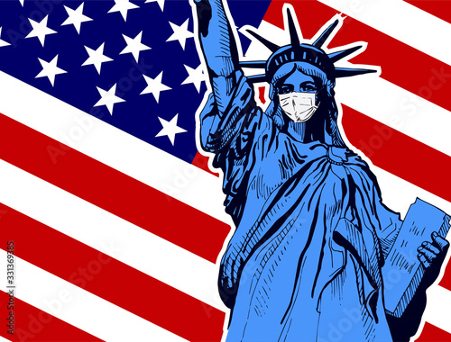 Statue Of Liberty Resists Coronavirus By Wearing A Face Medical Mask Vector Image Covid 19 Danger Usa Flag On The Background Buy This Stock Vector And Explore Similar Vectors At Adobe