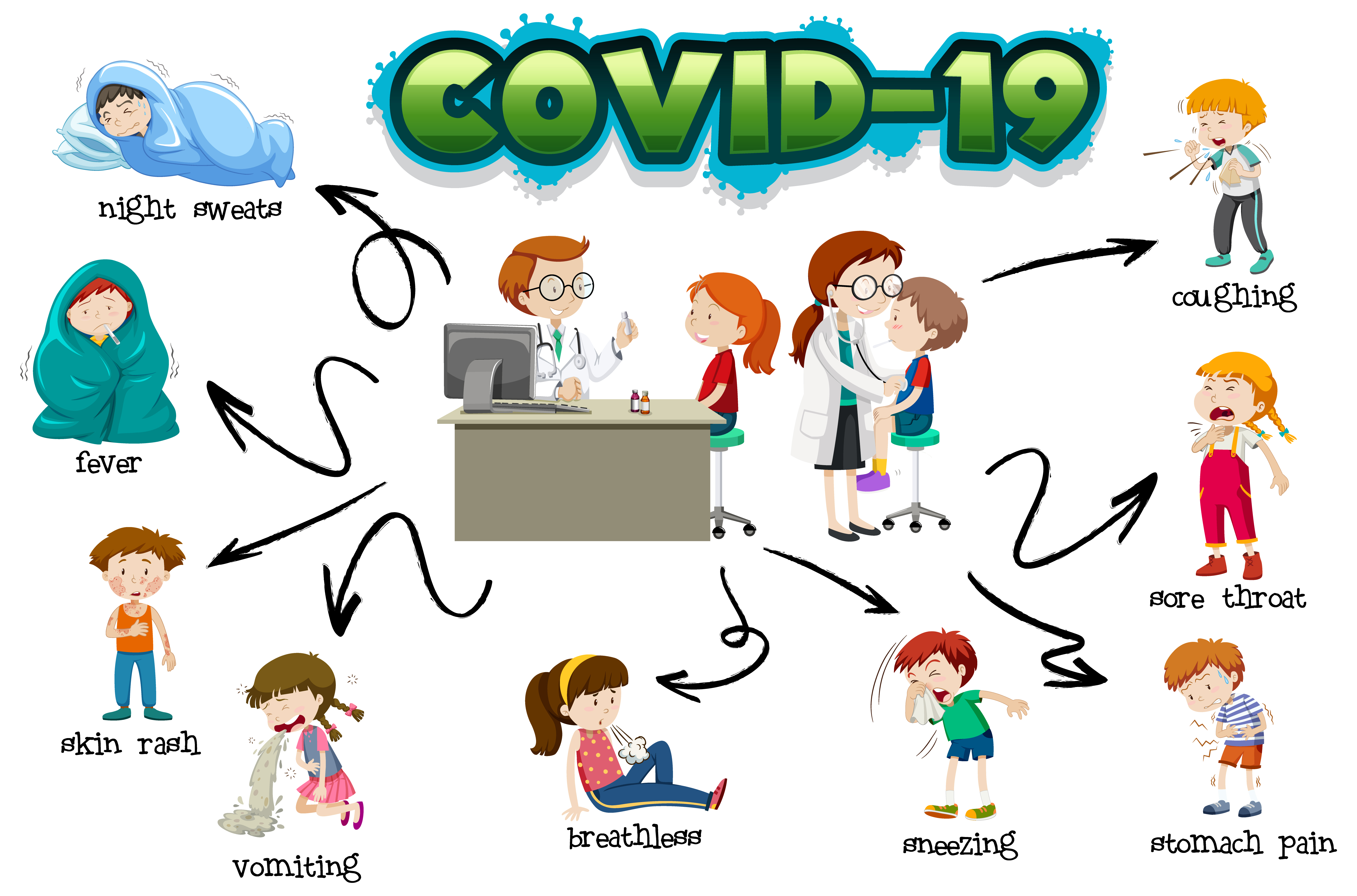 Pandemic Coronavirus Covid19 Symptoms Explain With Lineal Characters Like Headache Fever Cough Breathless With White Background And Lineal Style Viruses Vector Illustration Stock Illustration Download Image Now Istock