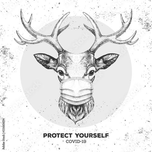 Hand Drawing Animal Deer Wearing Face Medical Mask Covid 19 Protection Methods Coronavirus Quarantine Warning Vector Illustration Buy This Stock Vector And Explore Similar Vectors At Adobe Stock Adobe Stock