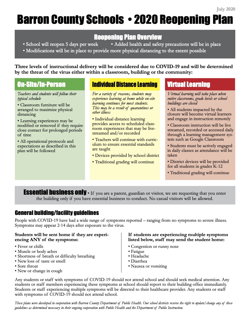 Covid 19 Information Center Back To School Plan 2020 2021
