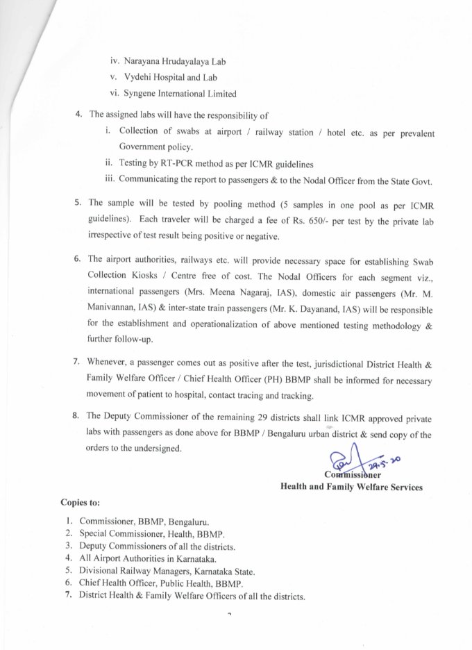 K Taka Health Dept A Twitteren To Fastrack The Covid19 Testing Process For The Exempted Category Of Passengers Reaching Karnataka The Govt Has Given Permission To The Private Labs To Setup Swab Collection Kiosks