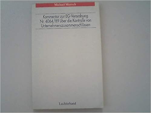 Kommentar Zur Eg Verordnung Nr 4064 89 Uber Die Kontrolle Von Unternehmenszusammenschlussen German Edition Miersch Michael 9783472005476 Amazon Com Books