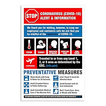 Amazon Com Covid 19 Coronavirus Alert Information Sign Retail And Commercial Notice With Symptoms Preventative Measures Install Ready Cdc Compliant 12 W X 18 H By Gds Office Products