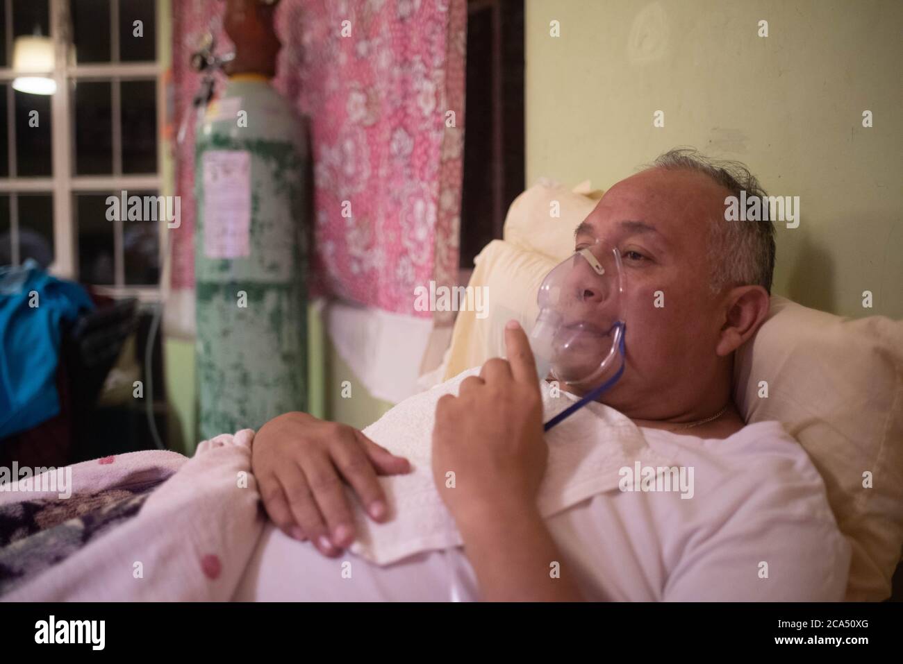 Xalapa Veracruz Mexico 3rd Aug 2020 Edgar Lunaga Mez A Covid 19 Patient Recovers At Home After Contracting The Virus And Suffering Various Crises And Lung Damage He Has Been In The Care Of