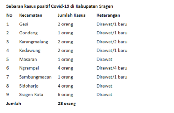Berikut Daftar Identitas 29 Pasien Positif Covid 19 Sragen Hari Ini Sebaran Wilayah Dan Riwayat Kontaknya Joglosemar News