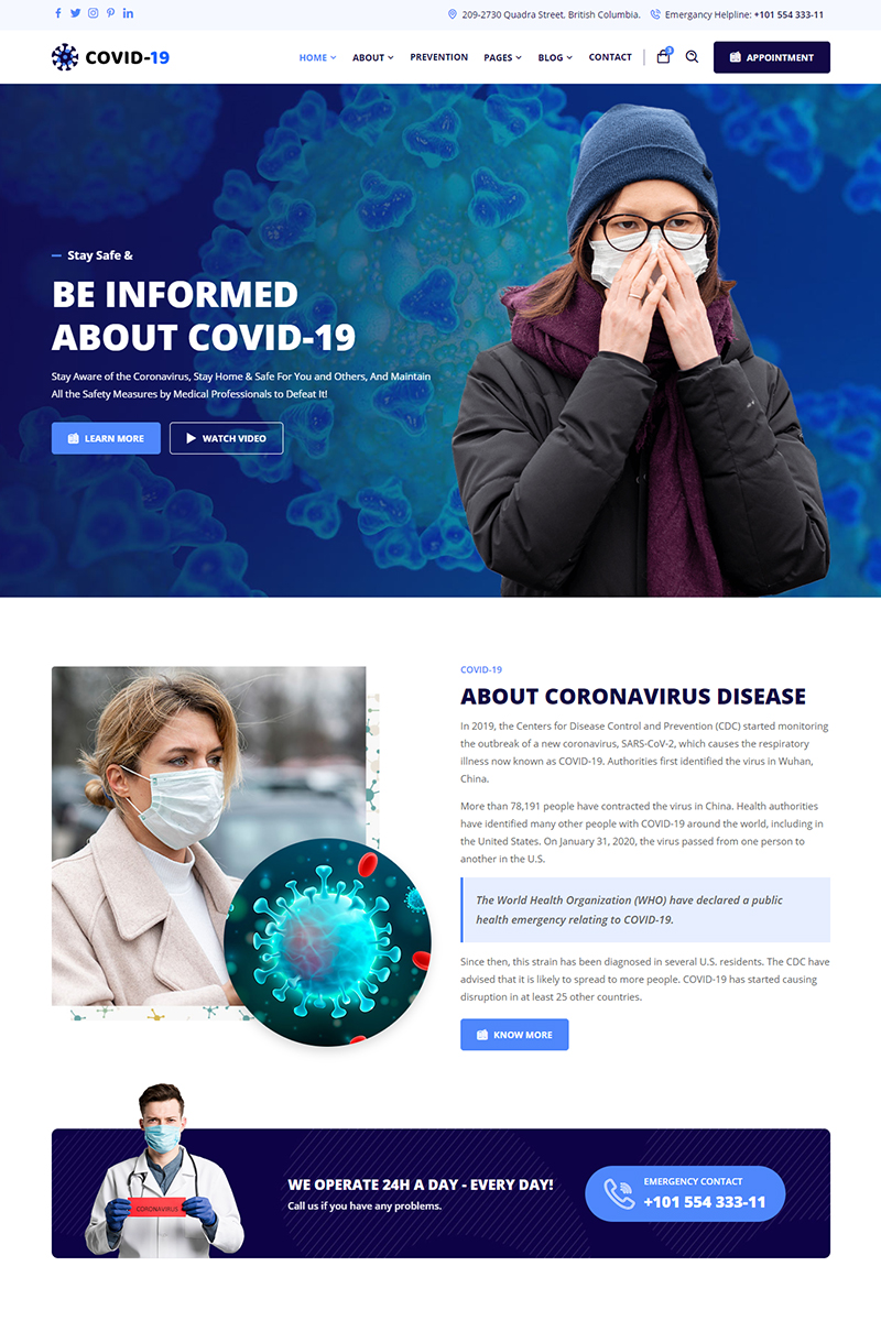 Covid 19 Corona Virus Medical Prevention Website Template 99216