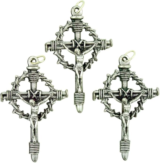 Amazon Com Lot De 3 Tono De Plata Corona De Espinas Crucifijo 2 Inch Clavos De La Cruz Colgante Arte Manualidades Y Costura