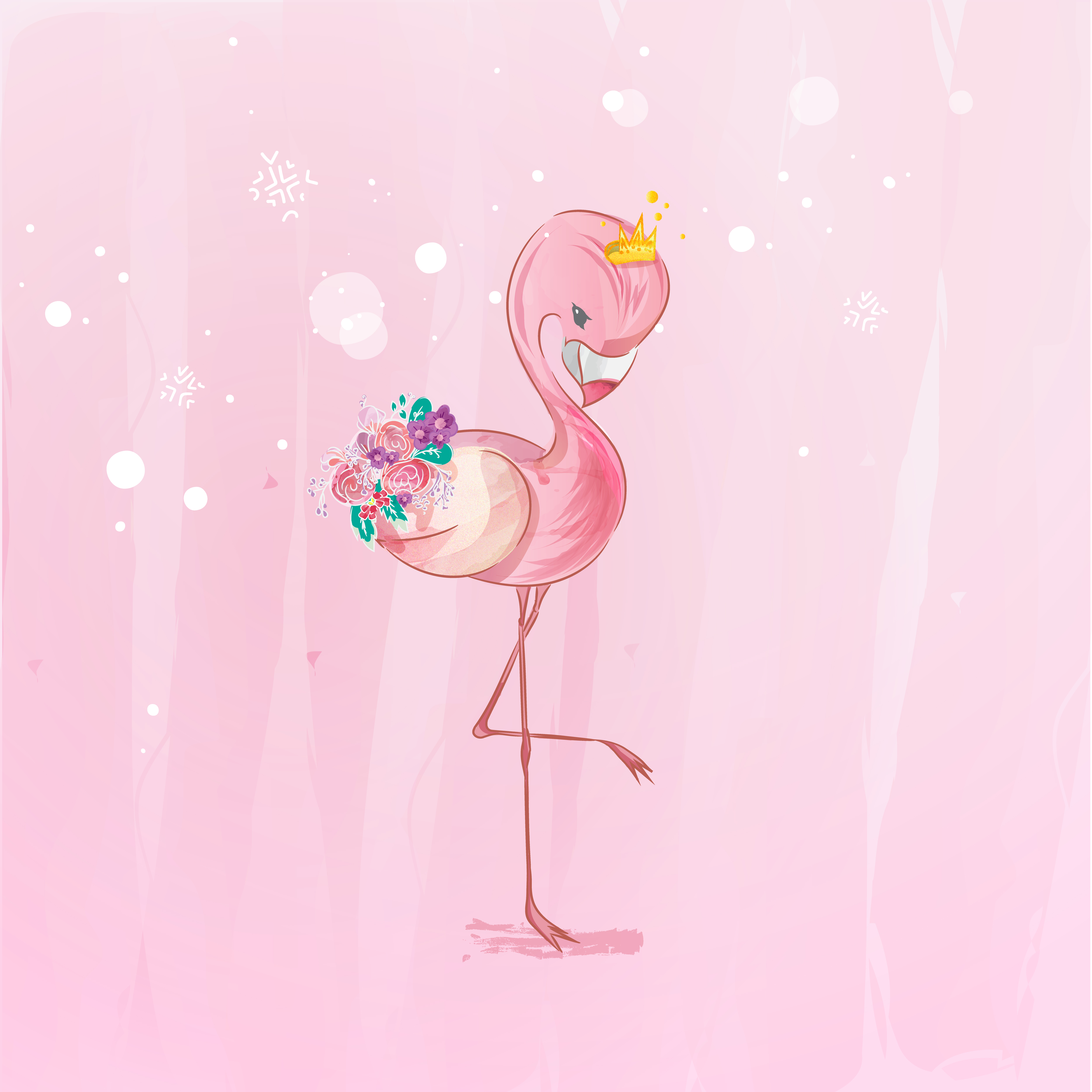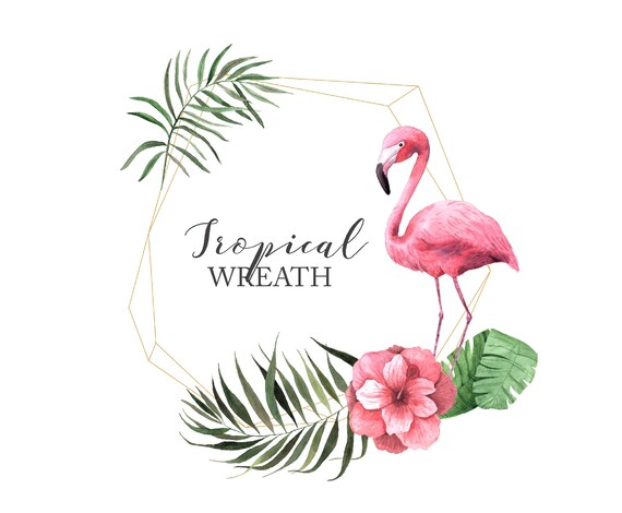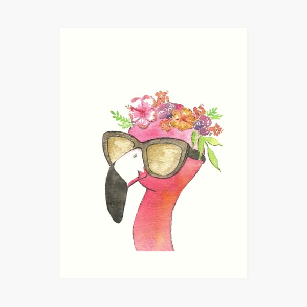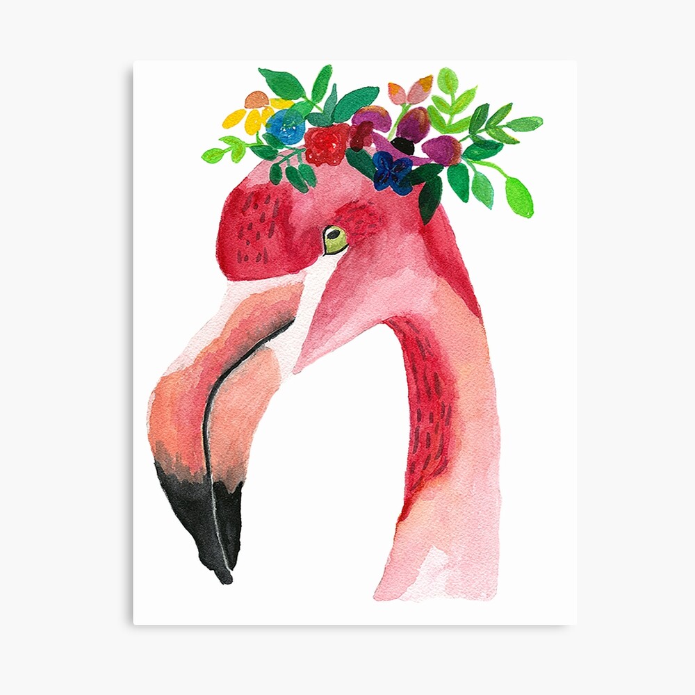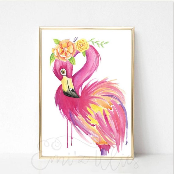 Arte Imprimible Acuarela Flamenco Con Corona De Flores Verano Arte Rosa Mano Pai Pintura De Color Rosa Arte Rosa Arte Imprimible
