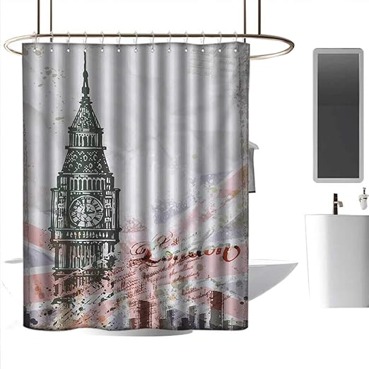 Alisoso Cortinas De Bano De Londres Doodle Iconos Ingleses Corona Londres Cabina Telefono Cabina Reloj Big Ben Paraguas Bicicleta Multicolor Para Colgar Cortina Decoracion Del Hogar Patron 13 W72 X L96 183x245cm 1