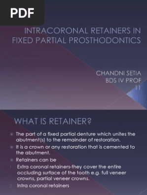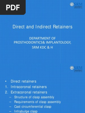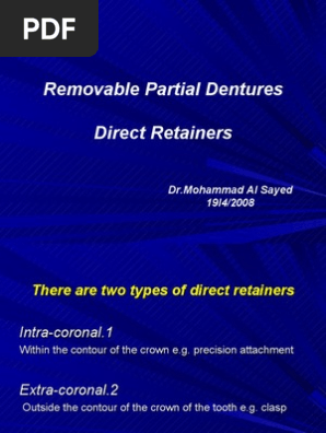 Direct Retainers 16 Pdf Extracoronal Attachments Many Of These Attachments Permit Vertical Movement Of Prosthesis During Occlusal Loading Course Hero