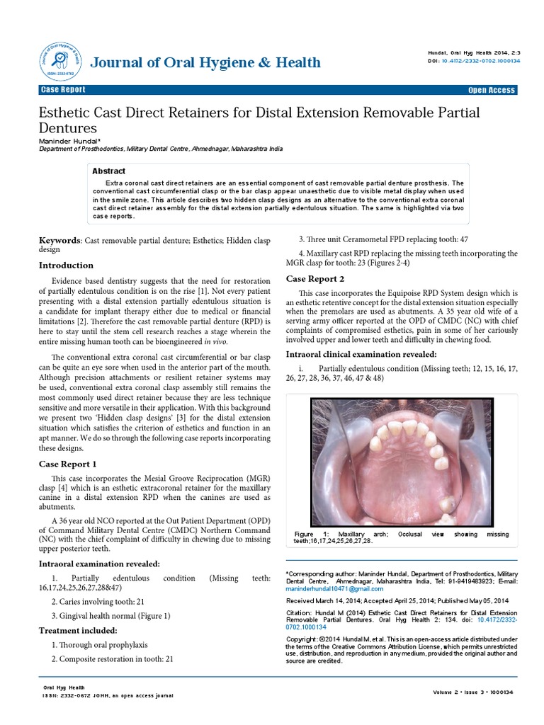 Esthetic Cast Direct Retainers For Distal Extension Removable Partial Dentures Omics International