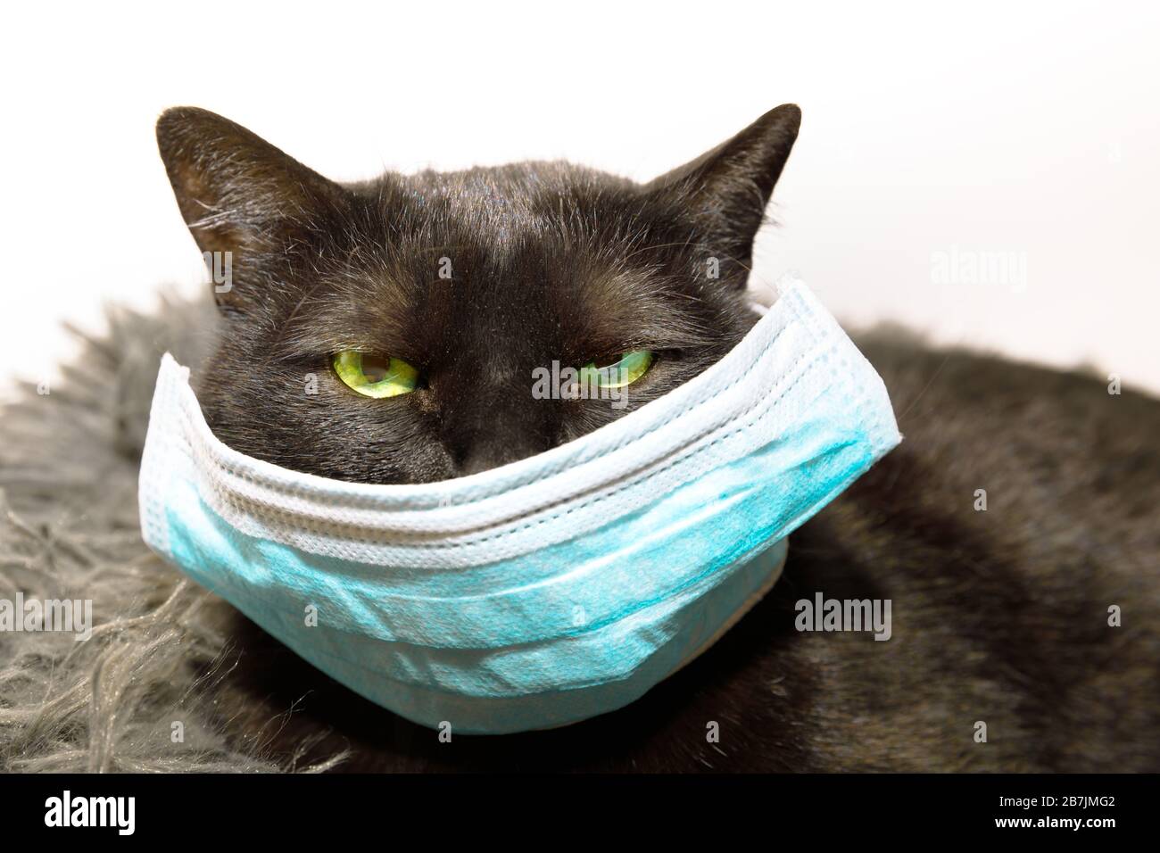 Portrait Of A Common Funny Black Cat With Green Eyes And Face Mask Concept Of Illness Of Pet And Viral Infections In Veterinary Concept Of Covid 19 Stock Photo Alamy