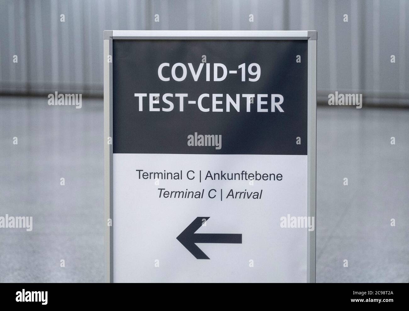 Langenhagen Germany 29th July 2020 A Sign With The Inscription Covid 19 Test Center Can Be Found At Hannover Airport In The New Corona Test Station Tests For Tourists Returning From High Risk Areas Will