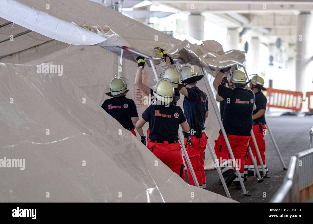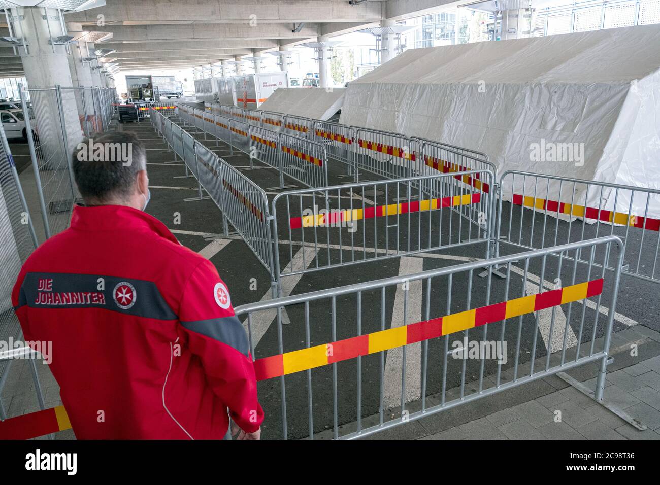 Langenhagen Germany 29th July 2020 Johanniter Paramedics Prepare A Corona Test Station At Hannover Airport The Tests For Tourists Returning From High Risk Areas Are To Begin In The Evening Credit Peter Steffen Dpa Alamy