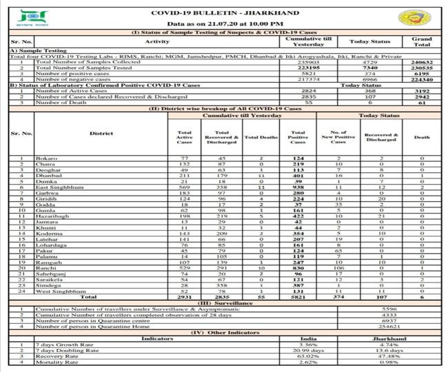 Jamshedpur Coronavirus Cases News Update 9 Corona Positive Cases Found In Jamshedpur Jharkhand Today Total 285 Jharkhand Coronavirus Cases News Update Jamshedpur Corona News