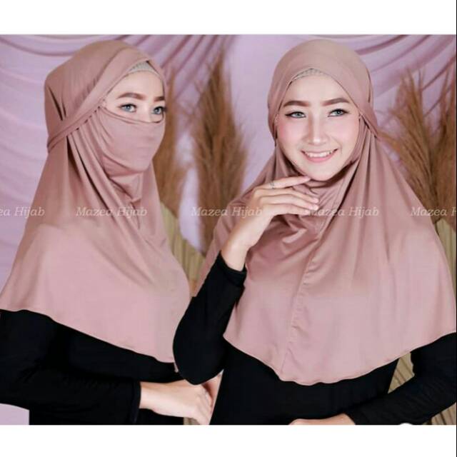 2in1 Jilbab Masker Anti Corona Hijab Cadar Syari Pendek Kerudung Khimar Instan Niqab Jersey Terbaru Shopee Indonesia