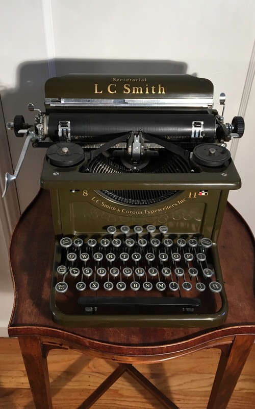 1929 L C Smith Model No 8 10 In Secretarial Army Green Vintage Typewriter Vintage Typewriters Typewriter Antique Typewriter