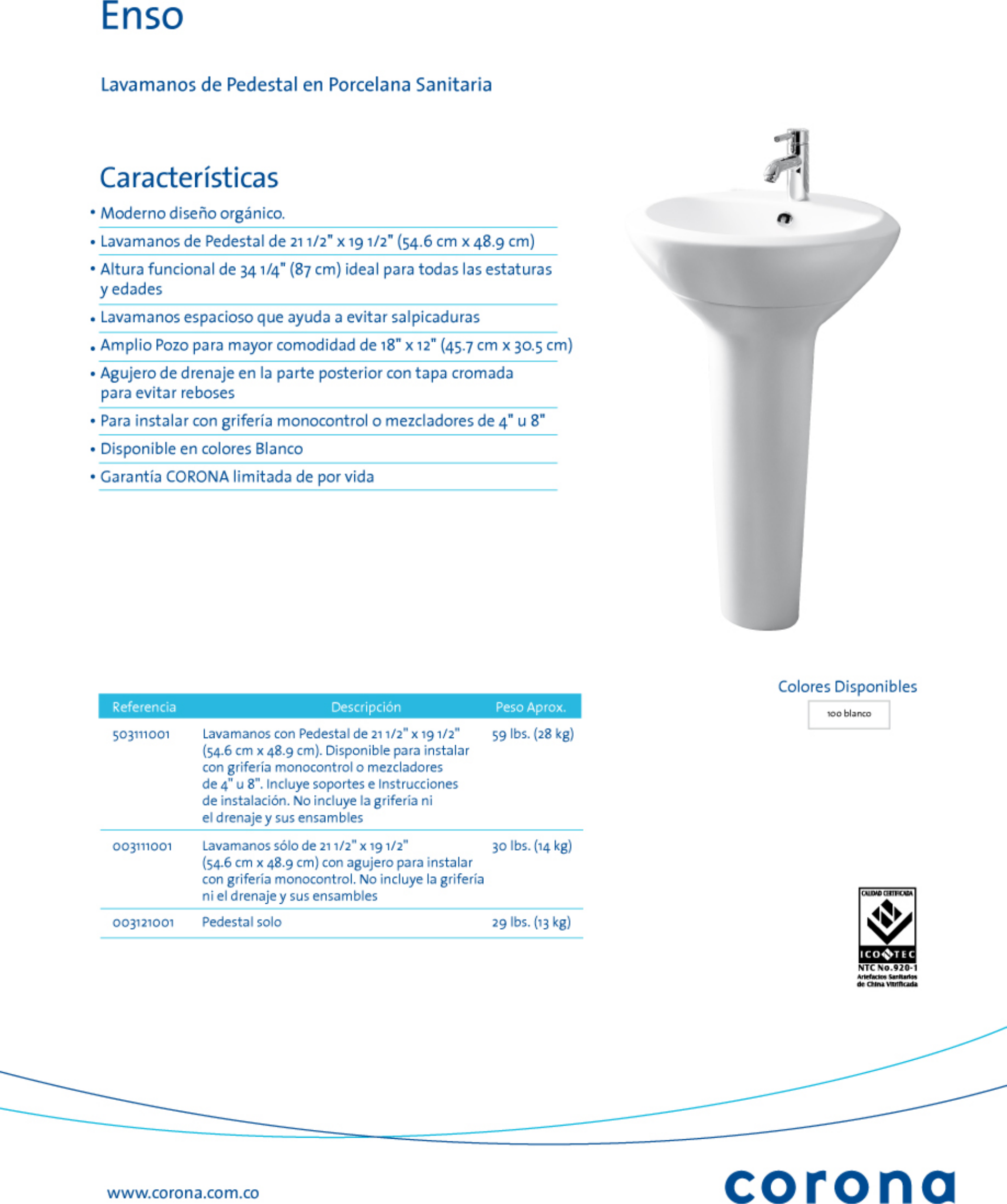 Lavamanos Con Pedestal Marca Corona Color Azul Nuevo Bs 900 00 En Mercado Libre