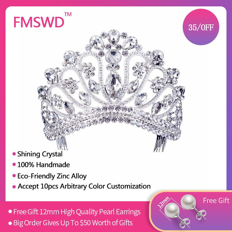 Compre Color De Oro Plateado Concurso De Belleza Tiara Rhinestone Coronas De Boda De La Reina De Plata Para La Diadema Nupcial Gran Corona Novia Joyeria Del Pelo J 190430 A 12 57