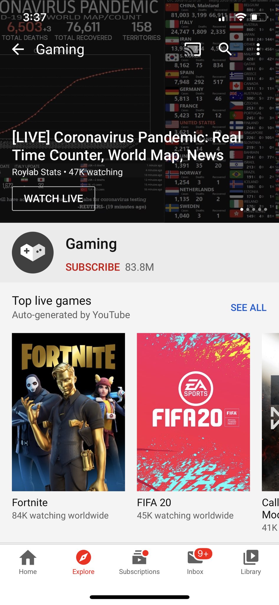 Cary Huang On Twitter Roylab Stats S Coronavirus Pandemic Livestream Is At The Top Of Youtube S Gaming Explore Page I Don T Think This Is A Game Https T Co 6or9as3wgr