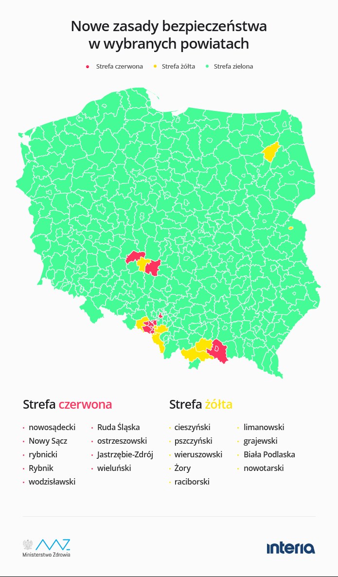 Koronawirus Ministerstwo Zdrowia Wprowadzi W Powiatach Strefy Czerwone I Zolte Z Wiekszymi Obostrzeniami Trzy Z Malopolski