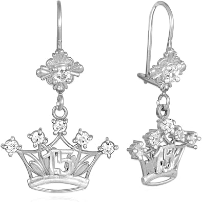 Amazon Com 14 K Oro Blanco Cz Studded Corona Dulce 15 Anos Quinceanera Arete Claddagh Gold Jewelry
