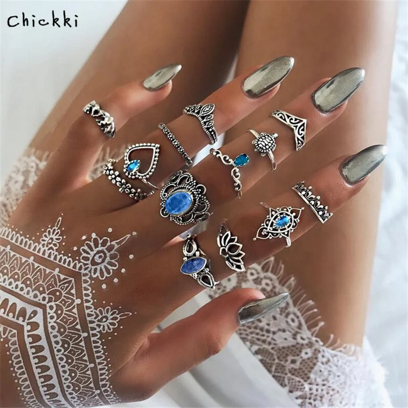 13 Uds Conjunto De Anillos Con Corona Tallada En Forma De Corazon Rosa Y Elefante De Plata Y Oro Antiguo De Bohemia Anillo Midi Para Dedo Nudillo Joyeria Para Mujer Aliexpress