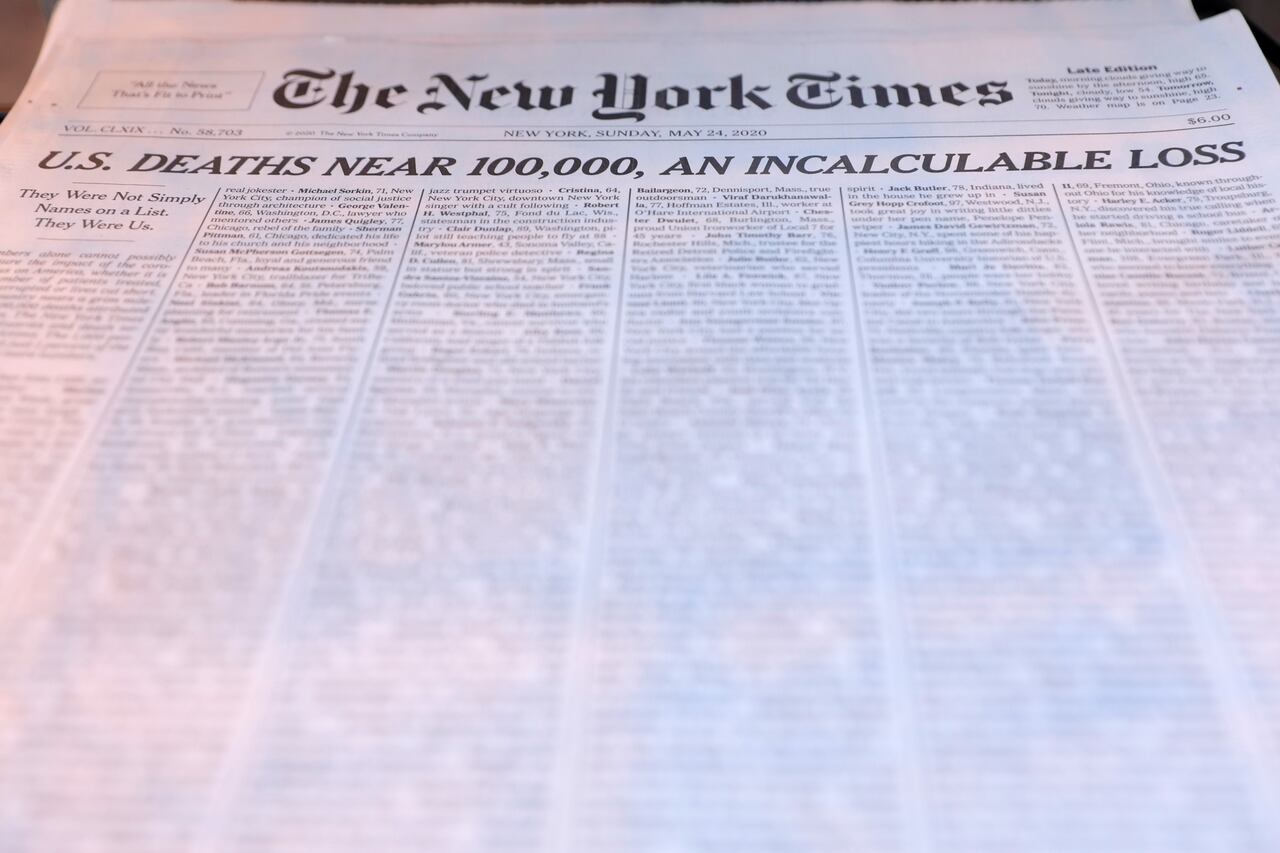 New York Times Dedicates Sunday Front Page With Names Of Coronavirus Victims 10tv Com